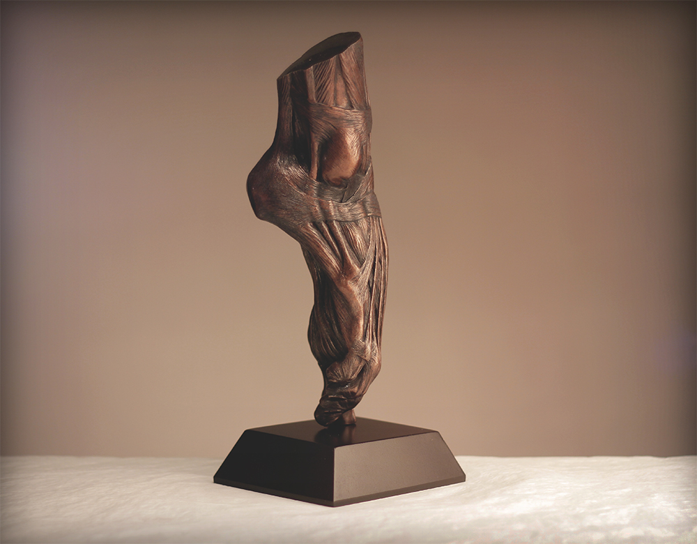 En Pointe is a hand-sculpted casting of the muscles and tendons of the human foot and ankle in the posture of a dancer On Point.